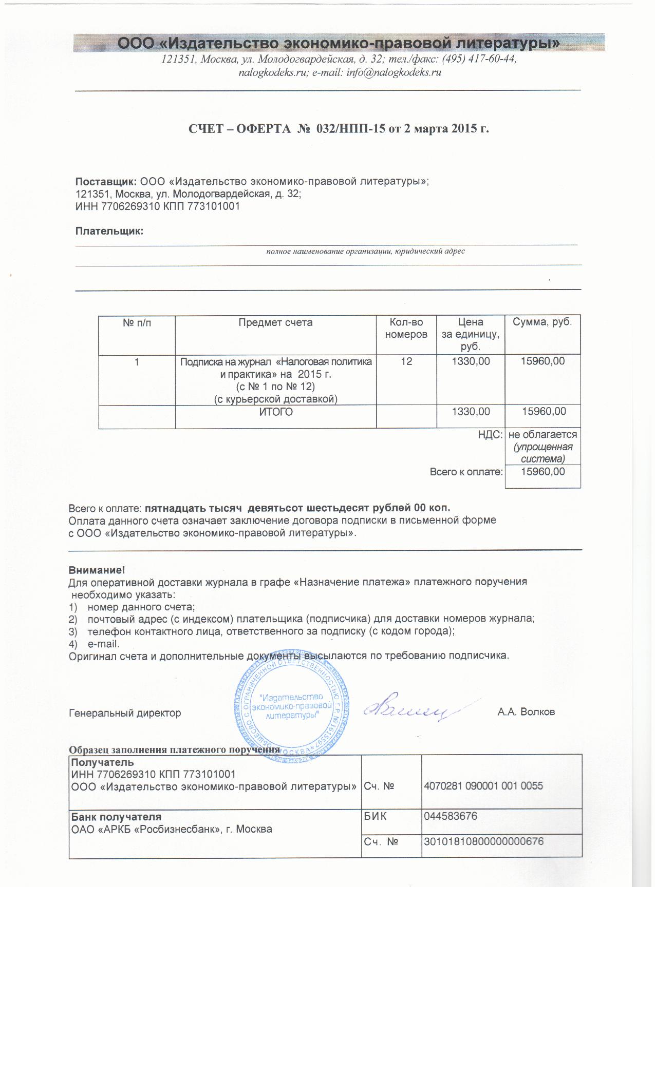 • Предыдущая публикация Счет НПП № 032 -2015-к.д.